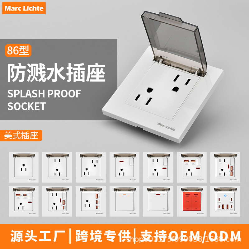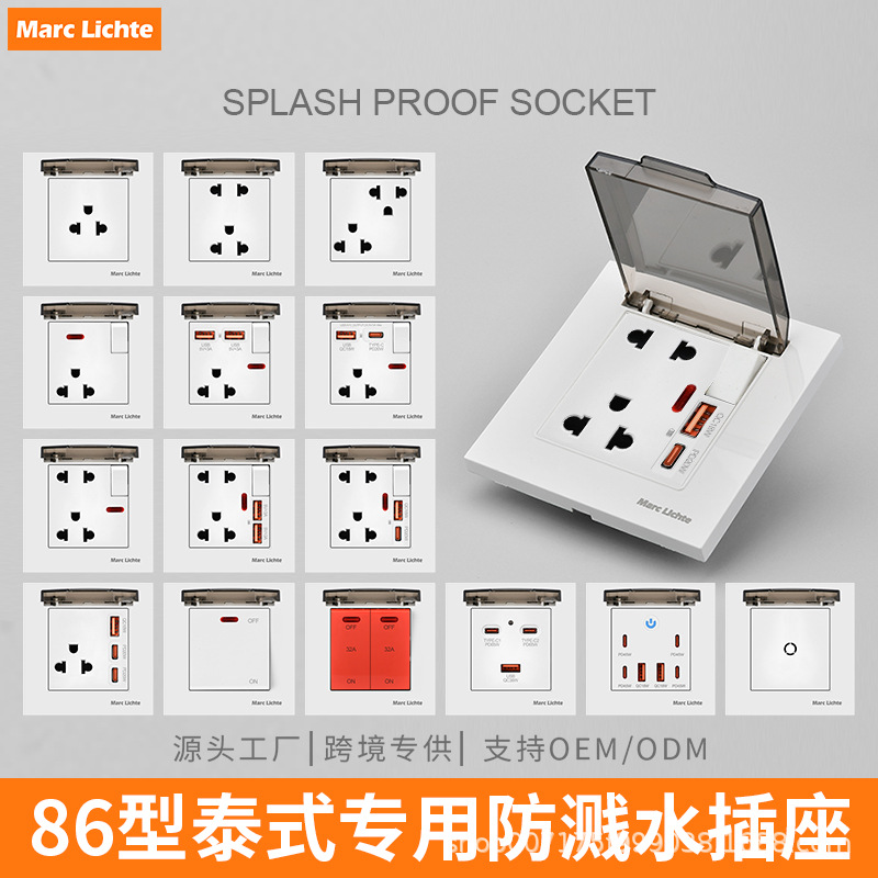 国境を越えた輸出タイプ 86 タイ 15A 3 穴ソケットパネル丸穴スイッチ付き USB 高速充電防滴防塵ソケット