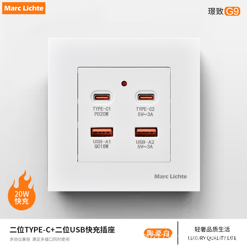 白色86型窒化ガリウム20W四位USB TYPE-C超速充壁スイッチパネル速充コンセント