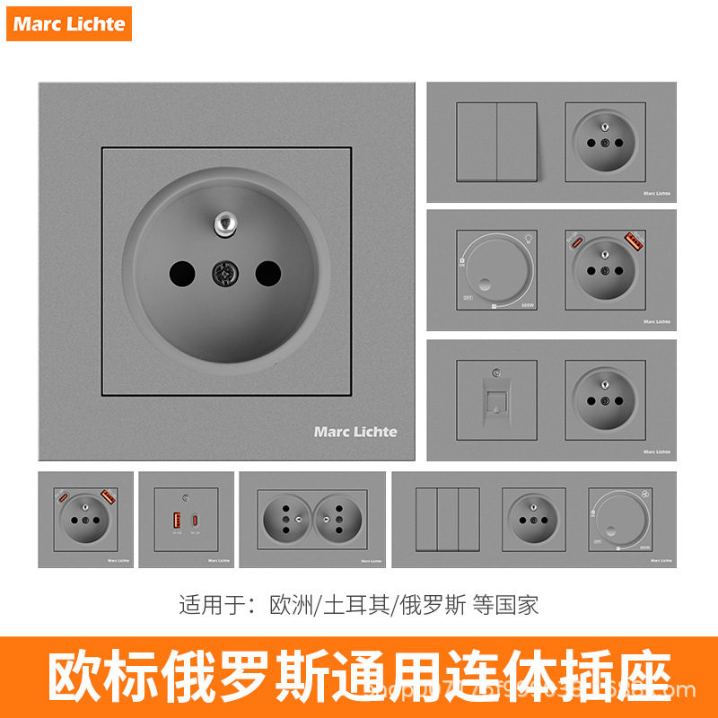 M80型徳標徳式ヨーロッパ欧標連体ロシア円底箱壁徳規灰色スイッチコンセント面