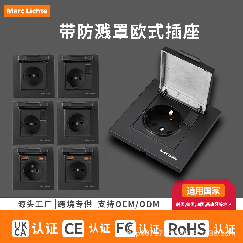 防水16a欧標二円孔保護カバー付きソケット86型黒色法標徳式スプラッシュUSB電源