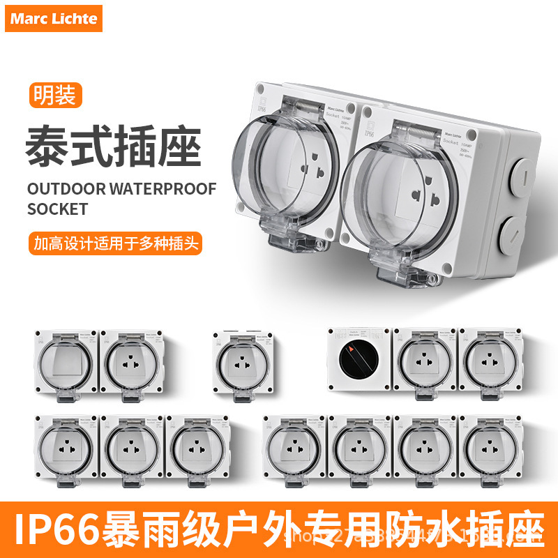 防水コンセント屋外防雨一人日焼け止めボックスタイ式泰標三穴防雨カバー防雨二人防水ボックス
