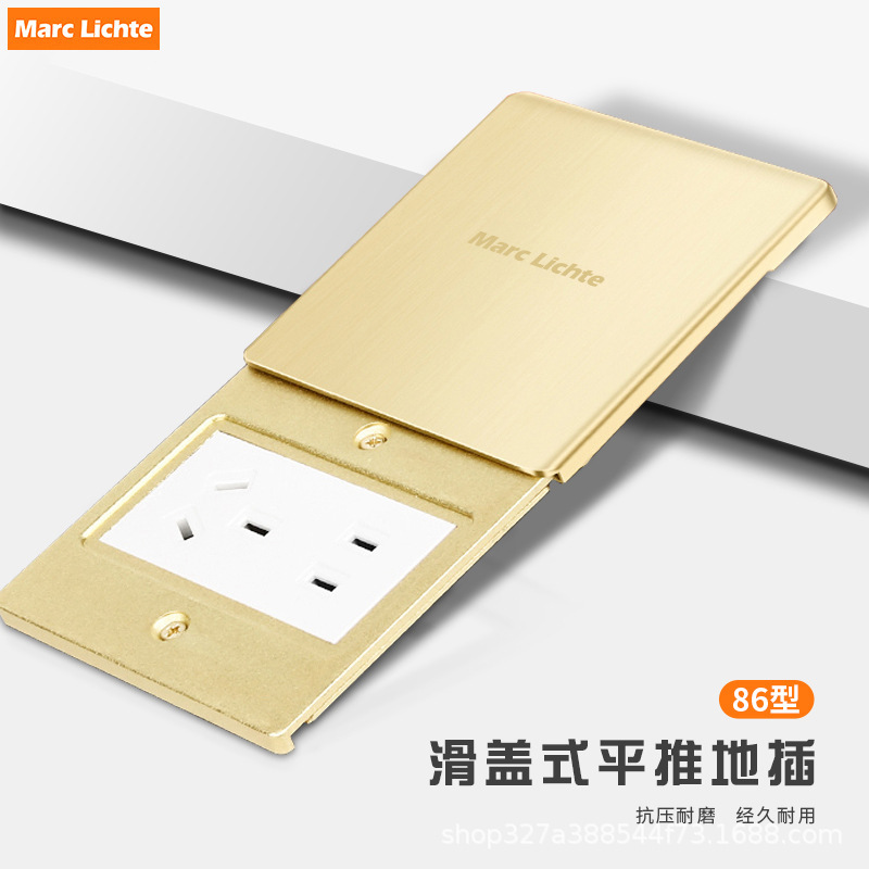 86型全銅金平押し五穴ネットコンセント防水電話パソコン床コンセント平押し超薄