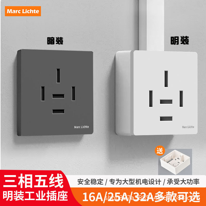 86型三相5線プラグソケット32A中型フラット25A産業用ハイパワー隠蔽エアコン380V5芯フラットピン