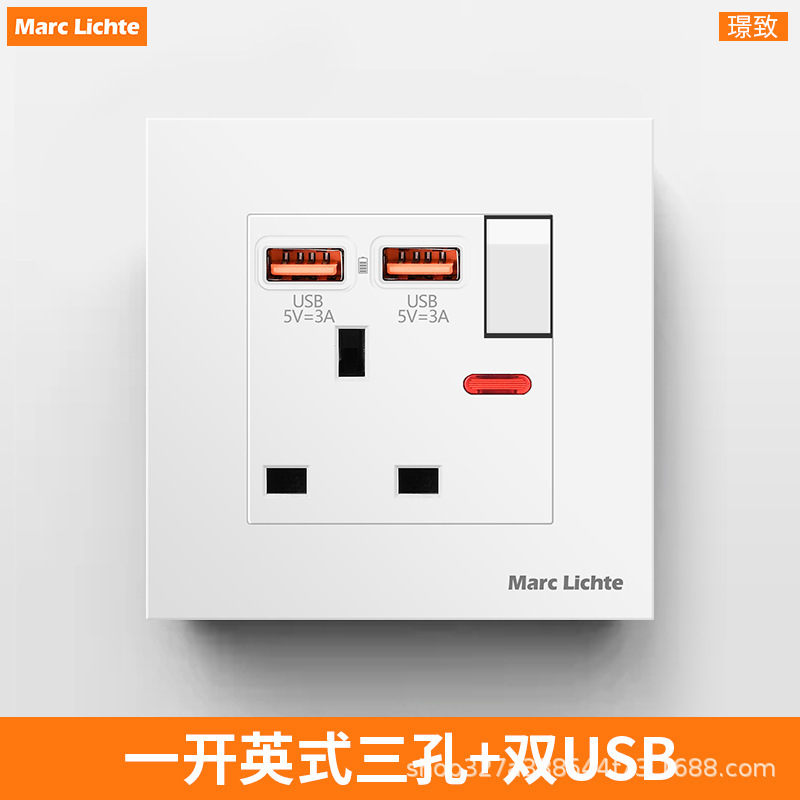 タイプ 86 越境輸出英国標準香港バージョン多機能 5 穴スイッチ付き 13A ソケットデュアル USB 充電隠しパネル