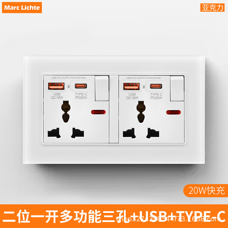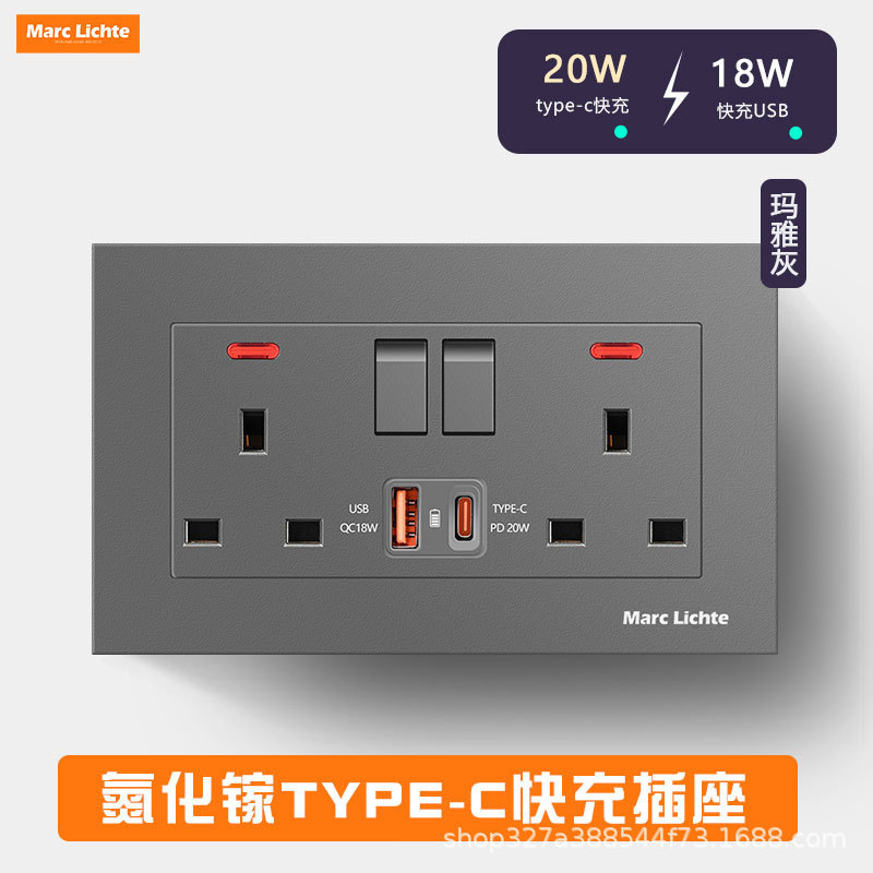 86 隠蔽型香港およびマカオ国際 13A 3 プラグ、急速充電 USB + typ-c 付き 1 オン英国 3 穴ソケット電気パネル