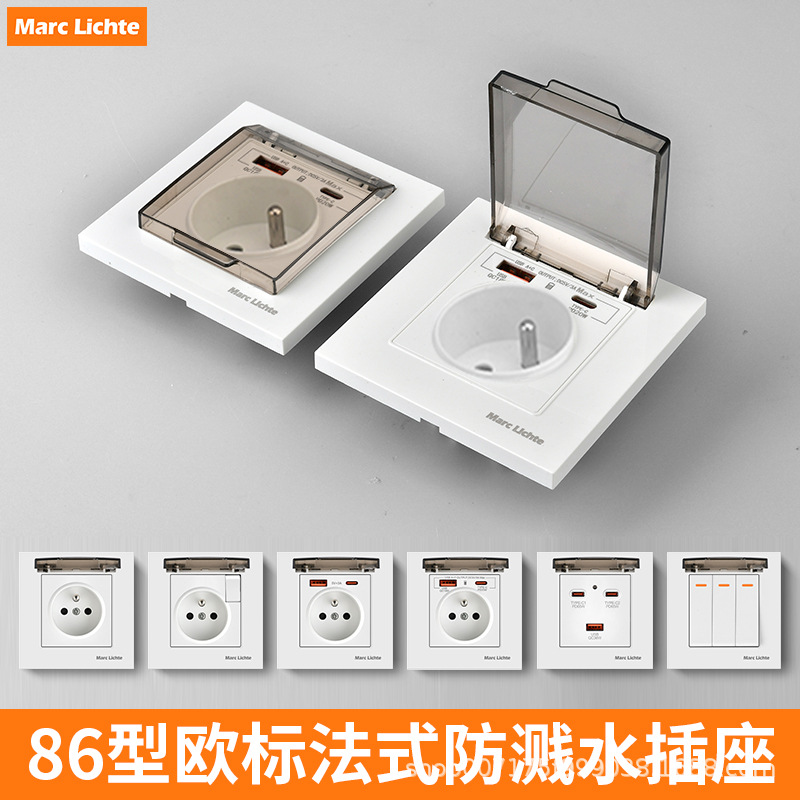 ホワイト防滴カバー タイプ 86 隠蔽型フランスドイツ規格 16A ワンオープンヨーロッパプラグパネルヨーロッパ規格ドイツソケット