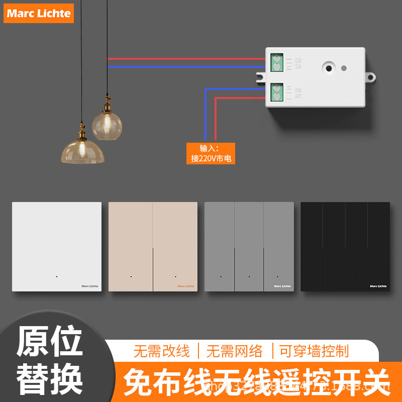 ワイヤレスリモコンスイッチ受信機配線不要 220v ホームスイッチインテリジェントデュアルコントロールリモコン自由に貼り付け可能