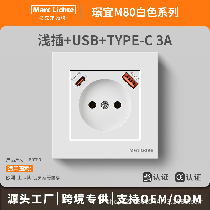 8086 ユニバーサル壁ヨーロッパ標準ドイツ、フランス、スペイン、韓国、ドイツ USB + タイプ C 充電ソケット