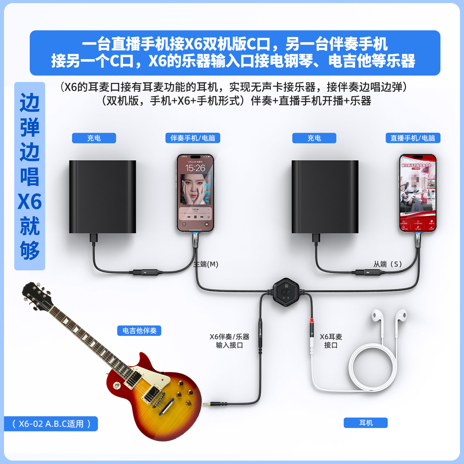 ライブブロードキャストX6サウンドカードコンバーター、真のステレオ3Dオーディオ、楽器に接続して演奏しながら歌うためのシングルおよびダブル携帯電話用アダプターケーブル