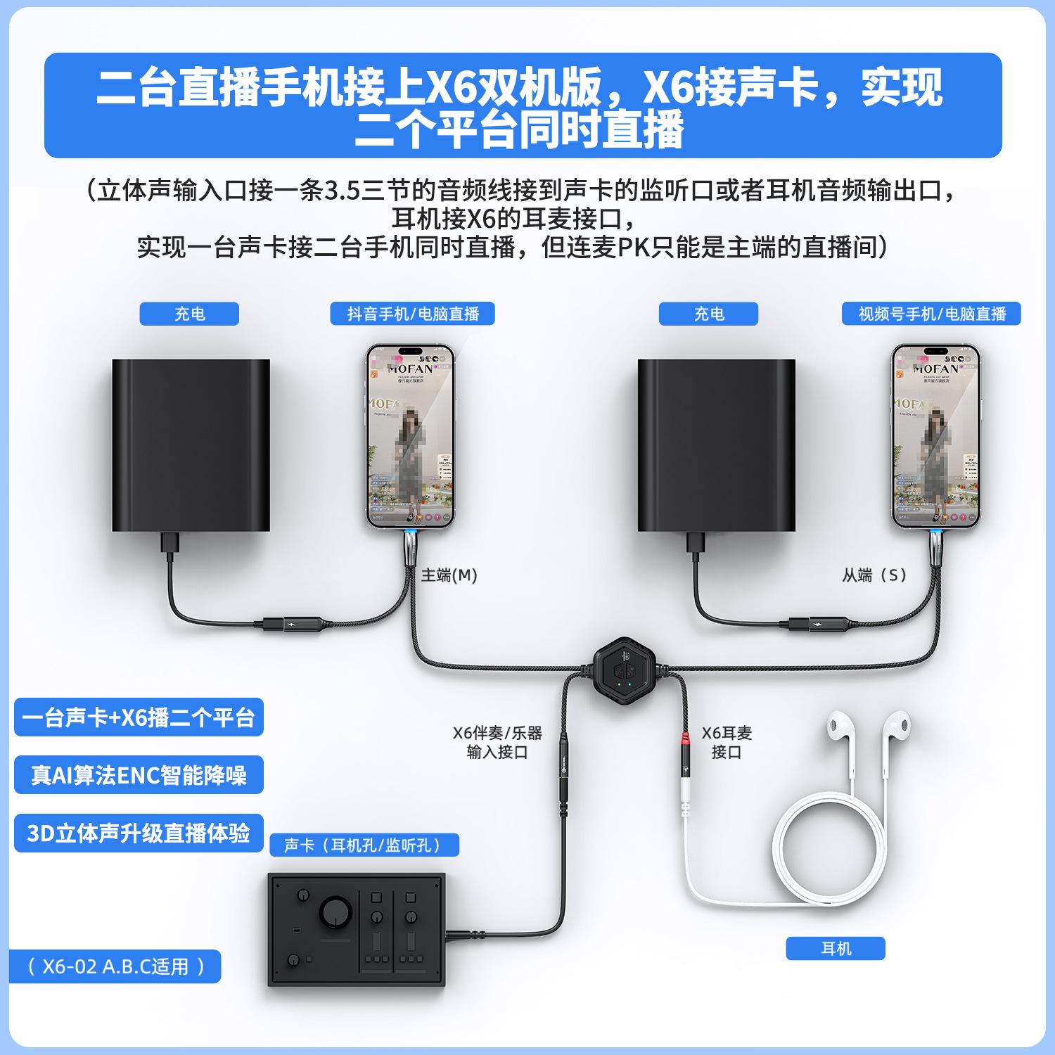 ステレオライブX6サウンドカード変換器リアルタイムモニター録音スマートAIノイズリダクション適用ロッド猛瑪大疆