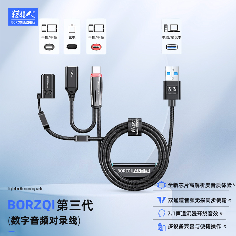 BORZOIステレオ録音オーディオケーブルは、携帯電話の無線麦とサウンドカード楽器のライブ中継に適しています