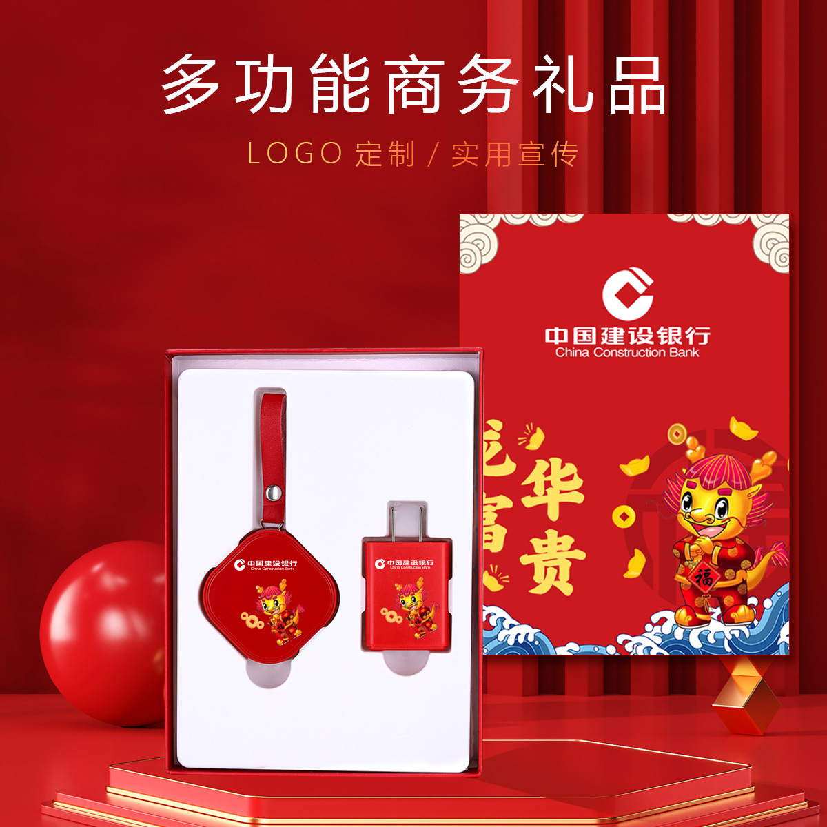 龍年データライン三点セットギフトボックス角型伸縮一引き三ギフト企業充電宝充電ヘッドラインカスタマイズ