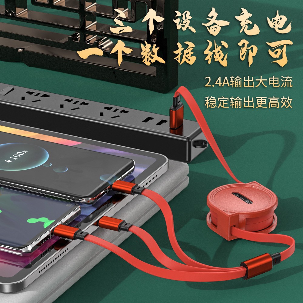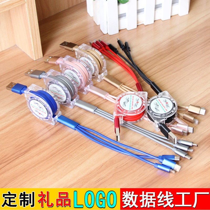 龍年伸縮データケーブルは、アップルの安卓会社ロゴプレゼント三合一データケーブルを適用する