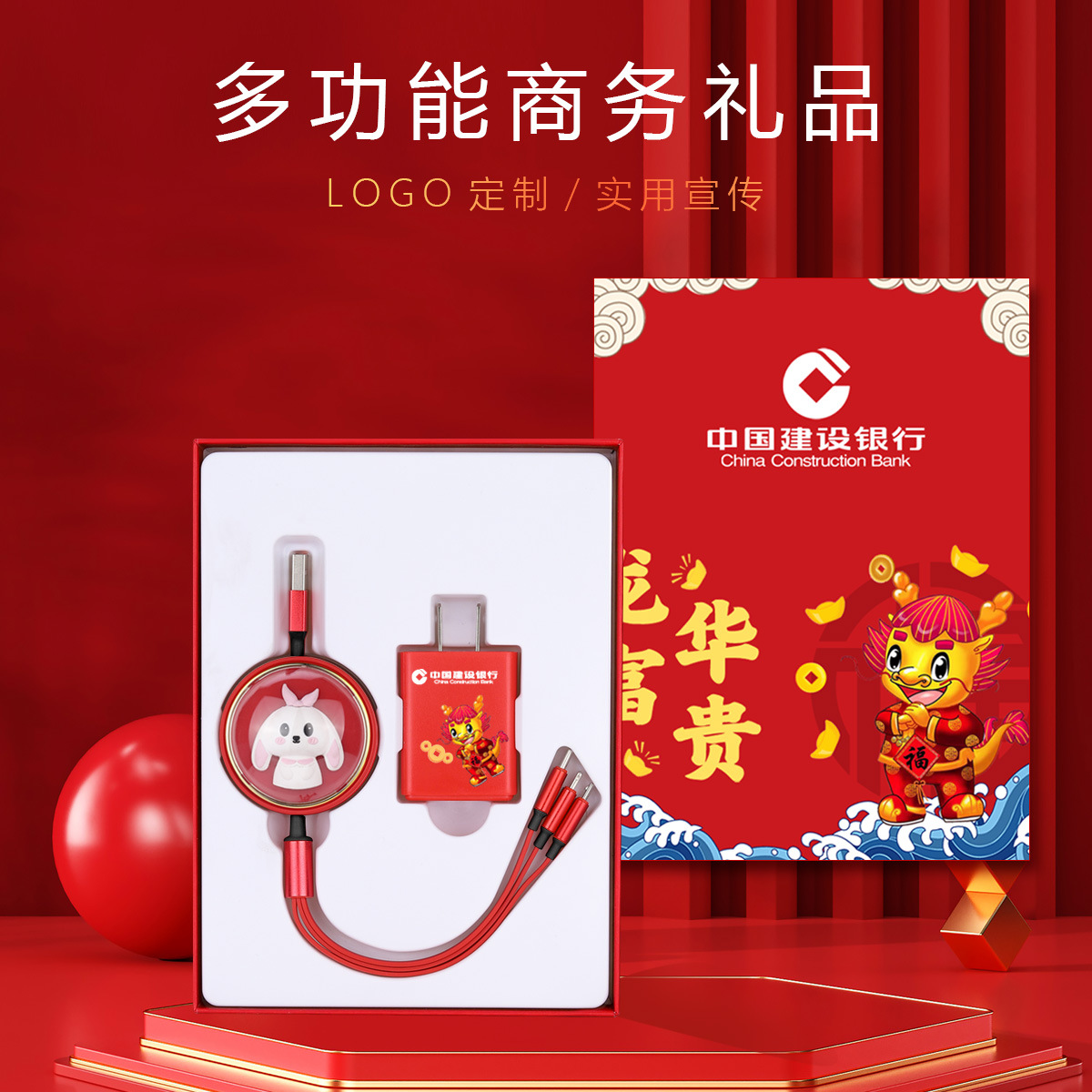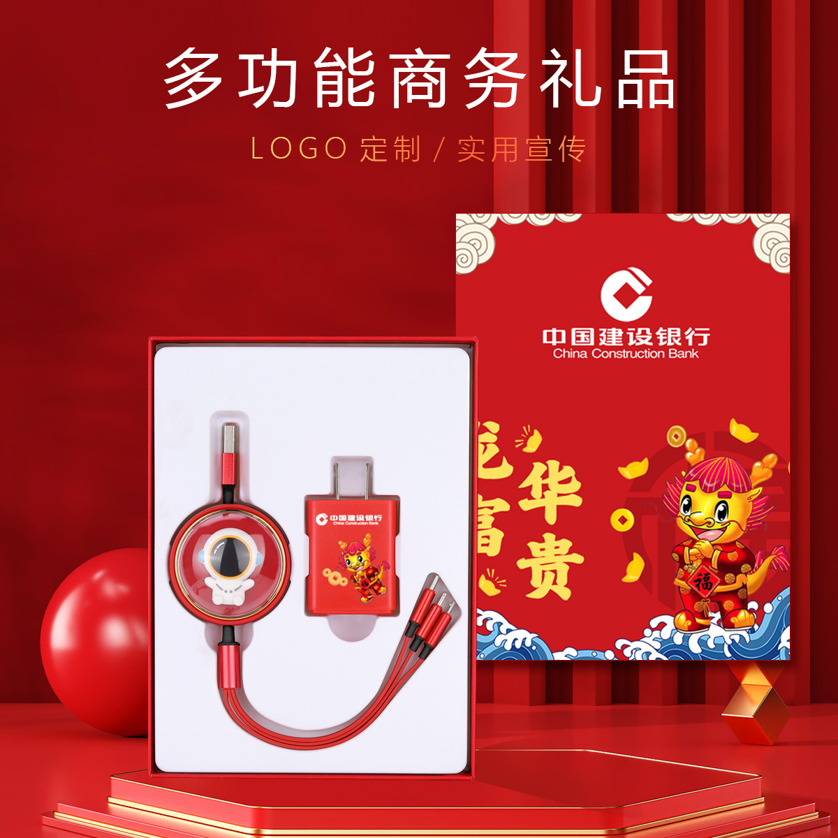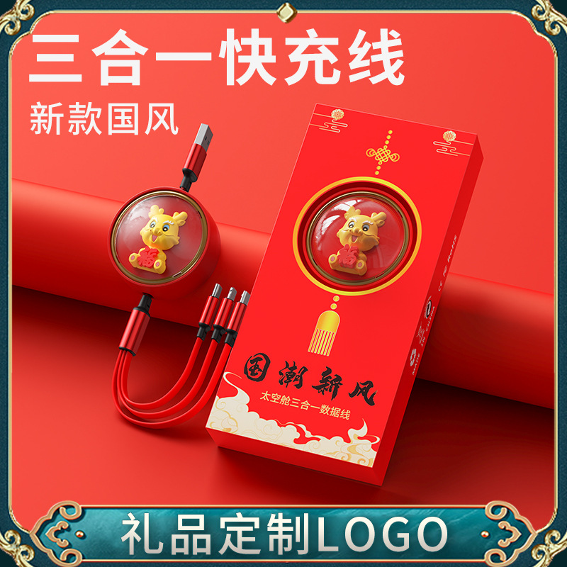 新年紅龍年ギフトケーブルセット印刷ロゴ充電ヘッドギフトボックス金ビジネス企業宣伝カスタマイズ