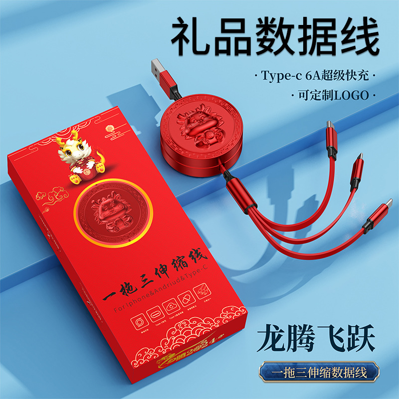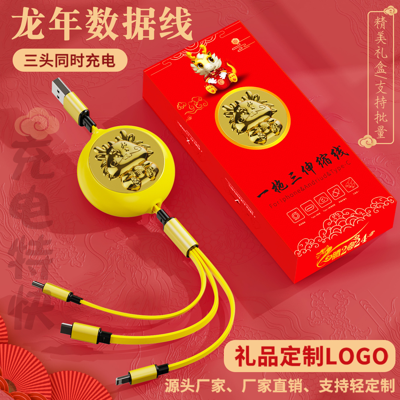 新年龍年一引き三伸縮データ線6a速充カスタムロゴ三合一ギフト充電線カスタム