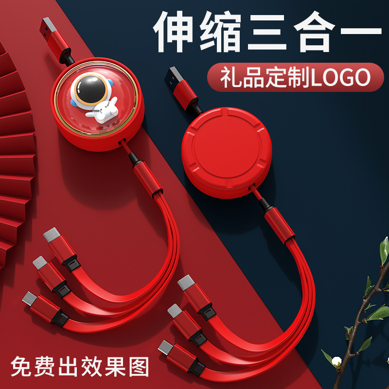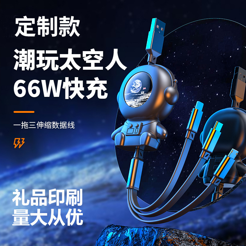 カスタマイズされた一モップ三usbケーブル伸縮ケーブルギフトロゴ宇宙飛行士三合一超急速充電ケーブル