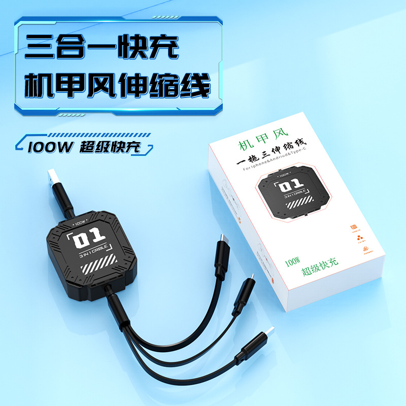 100w伸縮機甲のデータケーブルは、アップルのアンドロイドの超速充三合一データケーブルのカスタマイズに適用されます