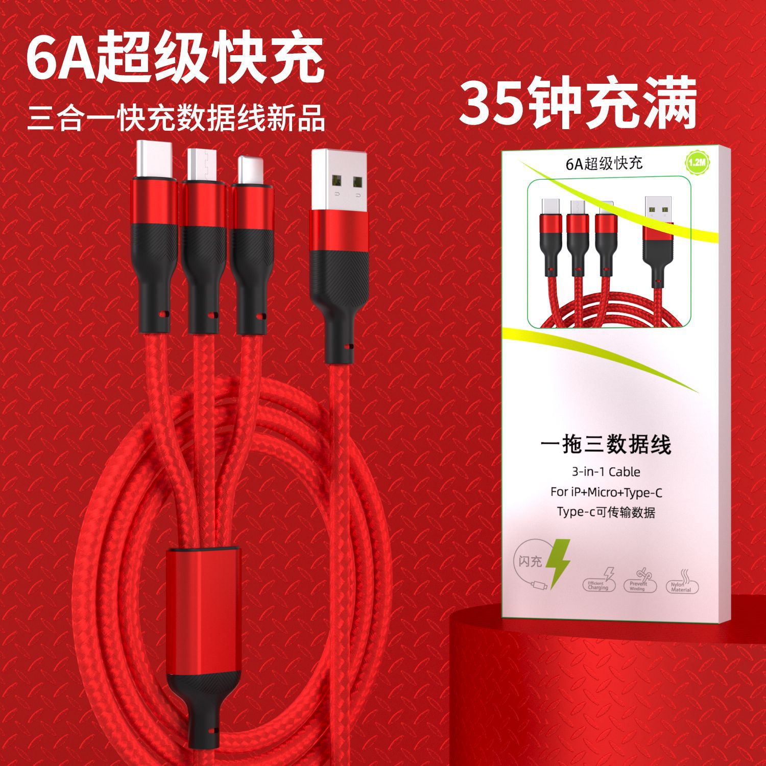 カスタマイズされた三合一充電線ロケッツのデータ線ロゴ印刷一引き三3a速充データ線プレゼント卸売り