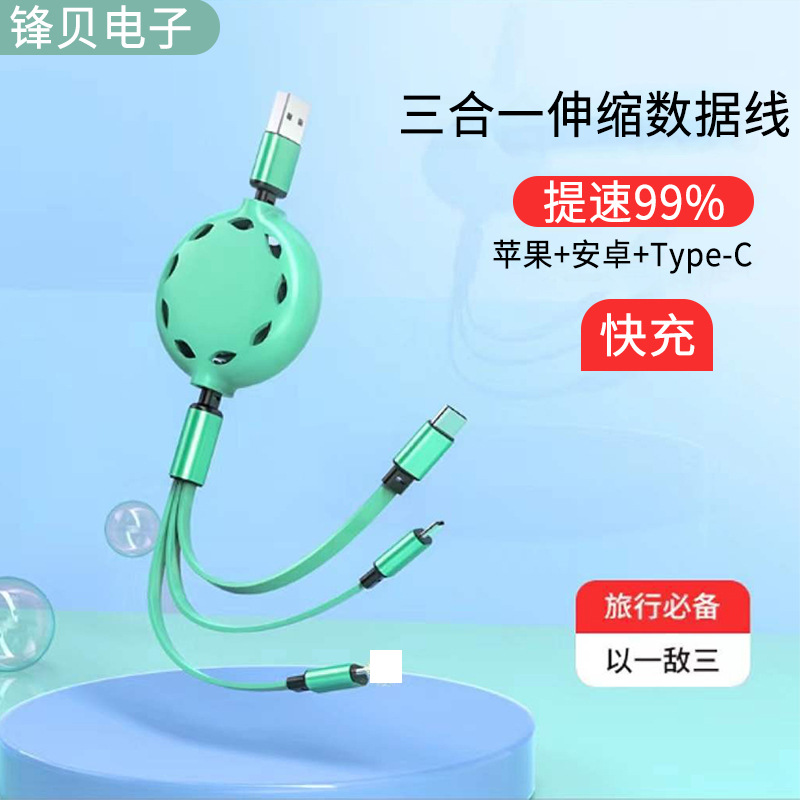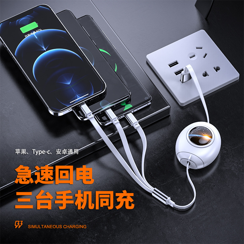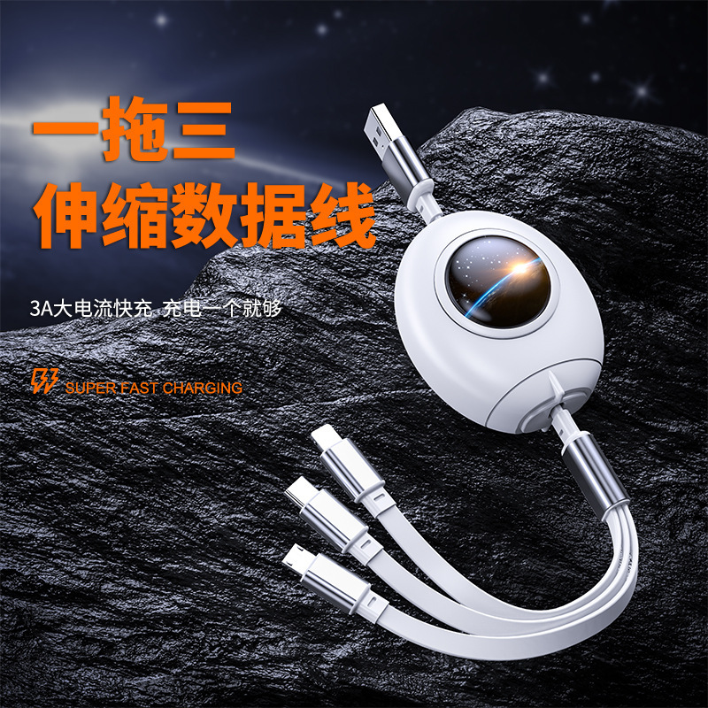 ロケット一牽引三伸縮ケーブル携帯電話快充三合一印刷ロゴプレゼント充電線3a快充線