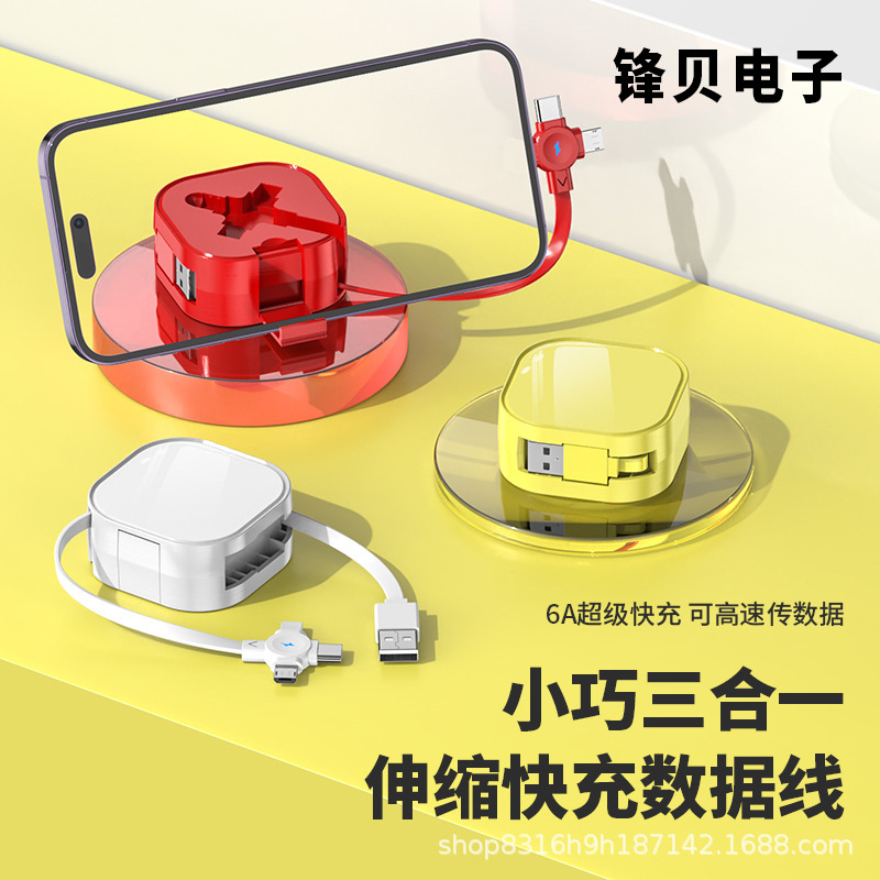 3a急速充電マカロン伸縮データケーブル三合一小プレゼント卸売り印刷ロゴ携帯電話車載充電ケーブル