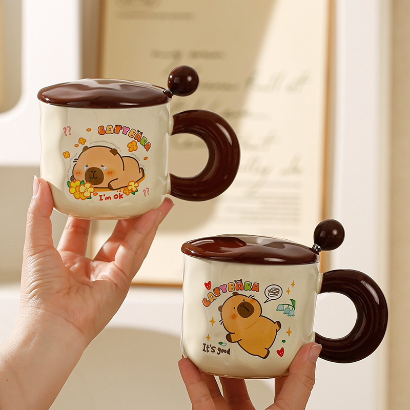 新しいカピバラ漫画マグ学生デスクトップドリンクカップクリエイティブギフトセラミックカップかわいい小さなカピバラ