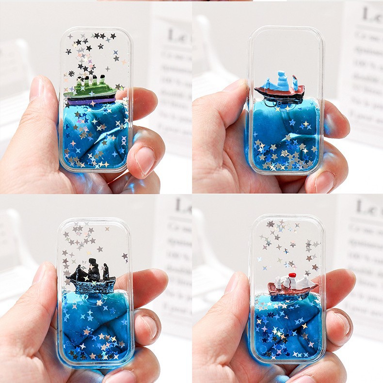 Douyinと同じスタイルのオイルオーナメント、流砂液体冷蔵庫マグネット、フローティングボート、アクリルクリエイティブギフト