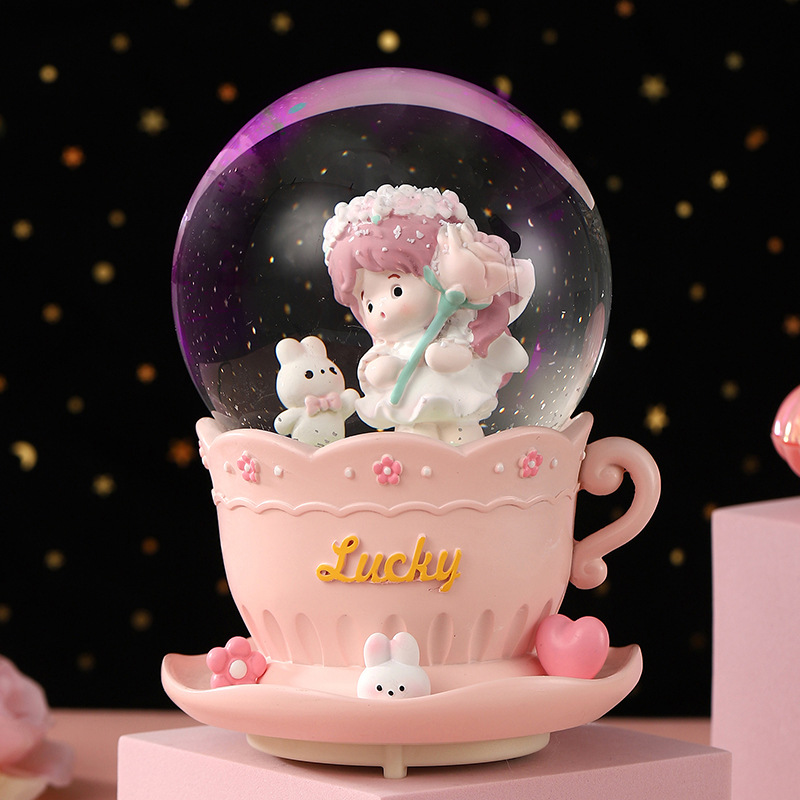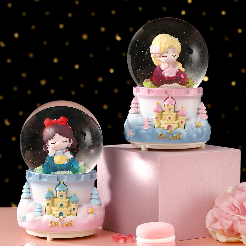 複数の女の子プレゼントオルゴール水晶球自動吹雪アニメ人形が子供の誕生日プレゼントオルゴール