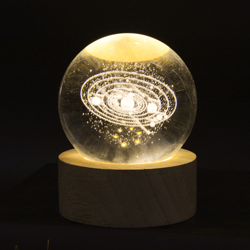 メーカー卸売り3d内彫刻発光水晶球創意銀河系デスクトップ置物小夜灯女子誕生日プレゼント