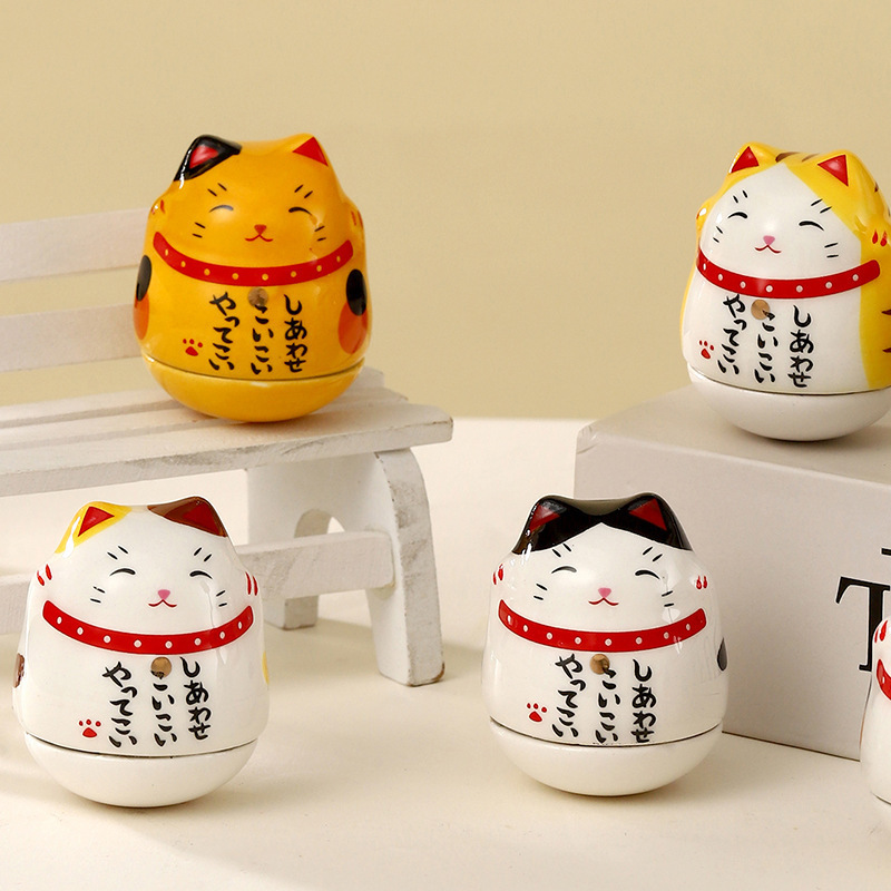 ミニ日本式ゼカ不倒翁招き猫小置物かわいいオフィスデスクトップ車載装飾品クロスボーダー