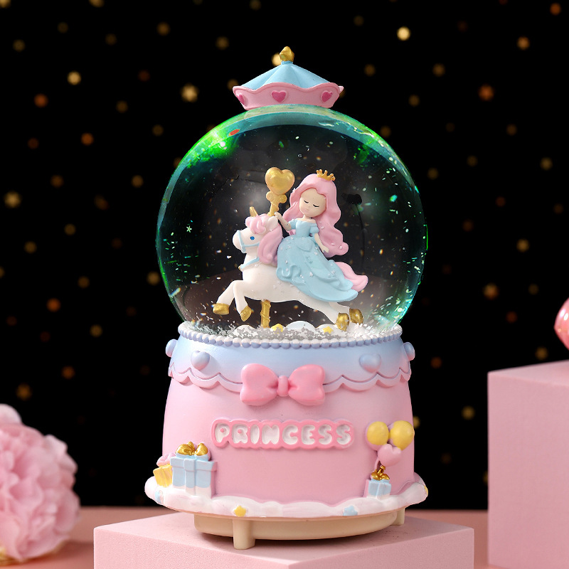 クリエイティブ発光ユニコーン王女水晶球オルゴールトロイの木馬の女の子オルゴール装飾プレゼント