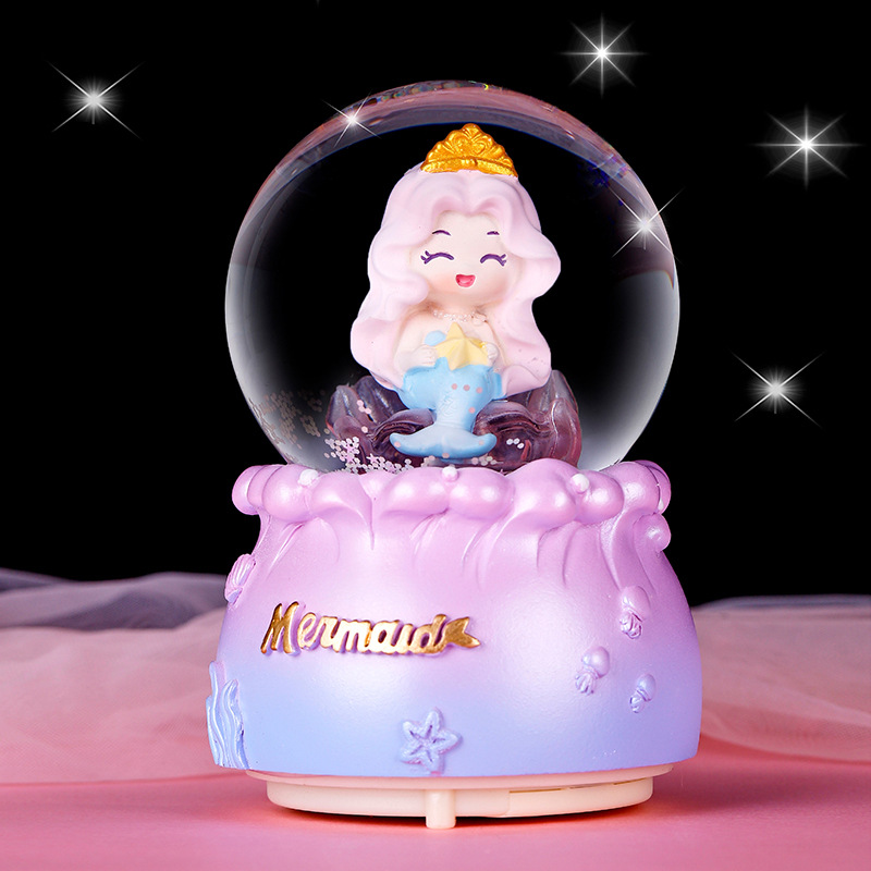 新しいオルゴール海底マーメイド発光水晶玉女子学生誕生日プレゼント小夜灯オルゴールテーブル置物