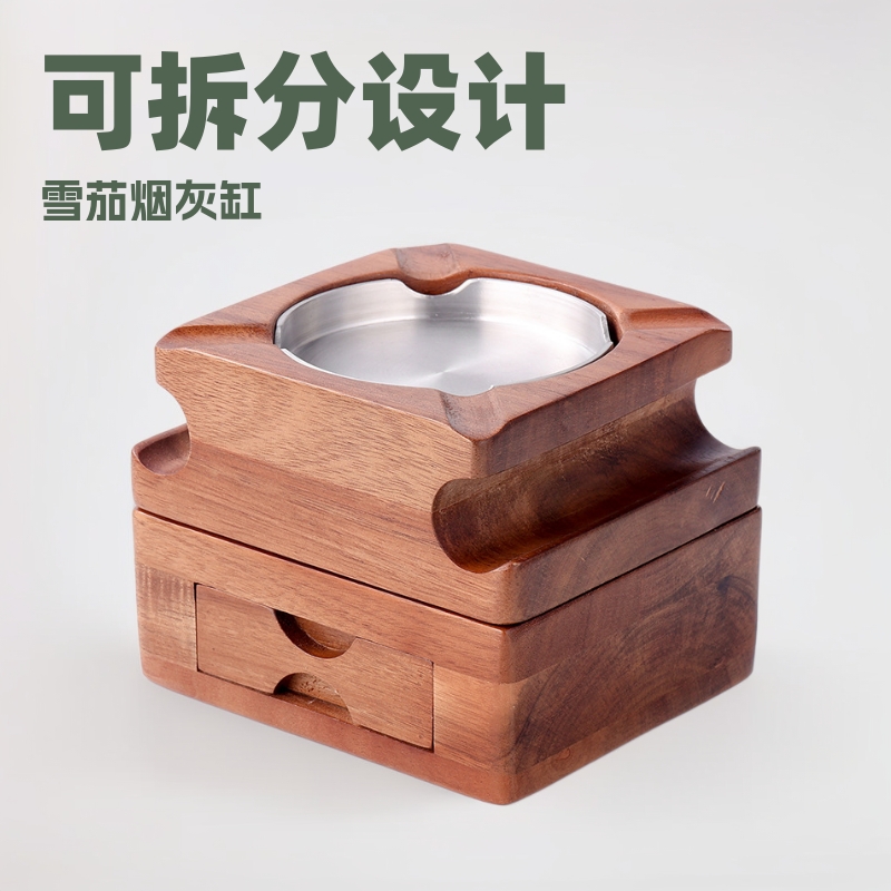 カスタマイズされた無垢材の葉巻灰皿二層磁気取り外し可能な国境を越えた工場供給