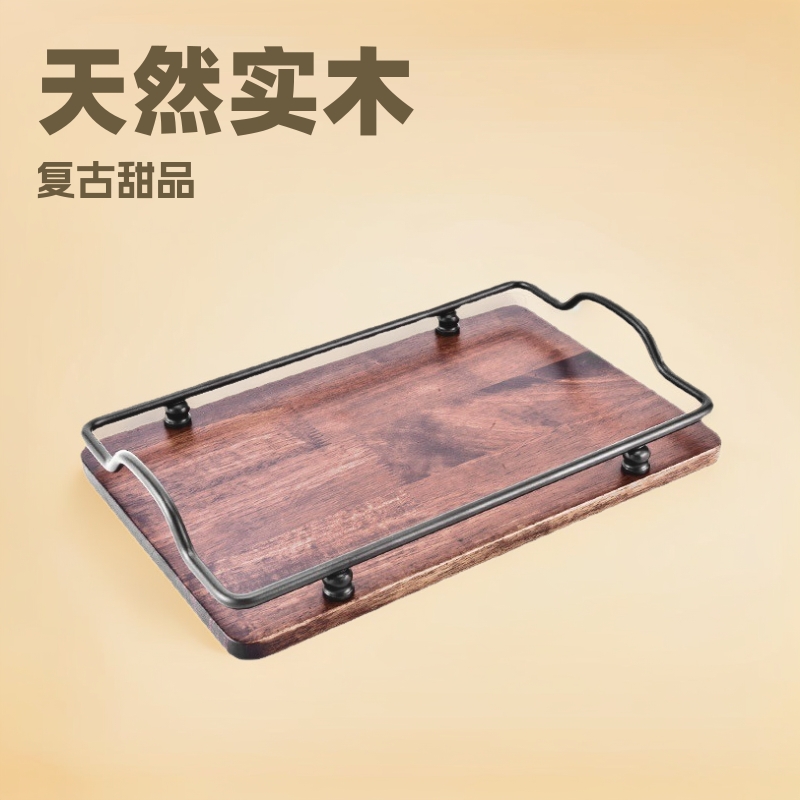 复古实木多功能甜品托盘 家用下午茶收纳架茶具