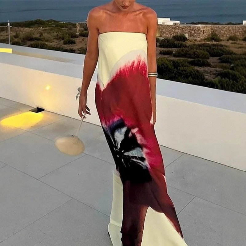欧米の国境を越えた女装夏の新しいファッション気質の袖なしの肩なしのプリントワンピース