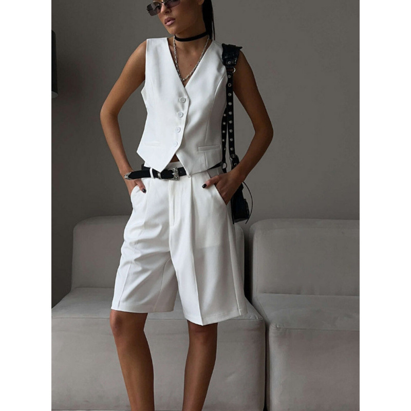 2025新型vネック馬甲直筒半ズボンセット快適カジュアル通勤欧米クロスボーダー熱売タイプ婦人服