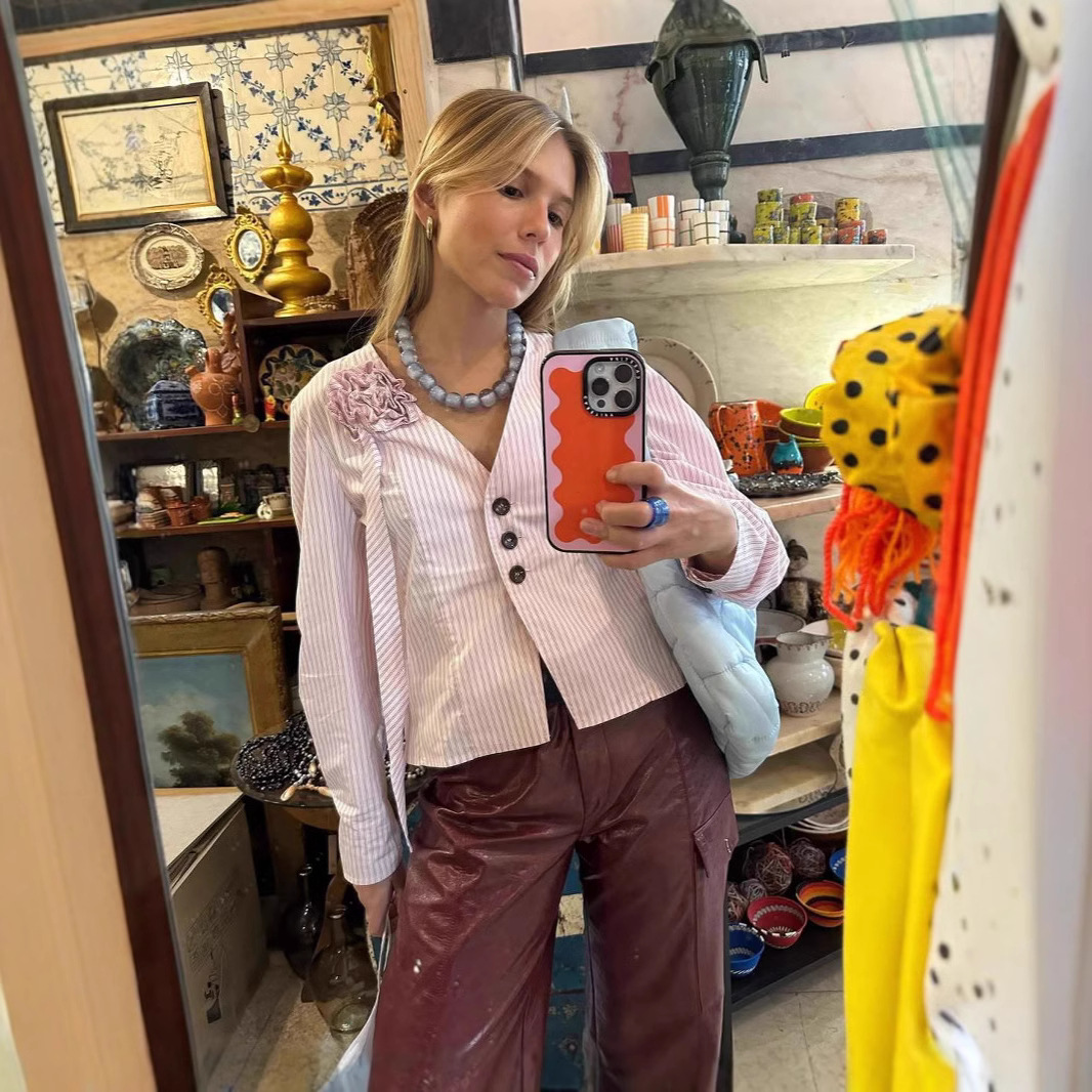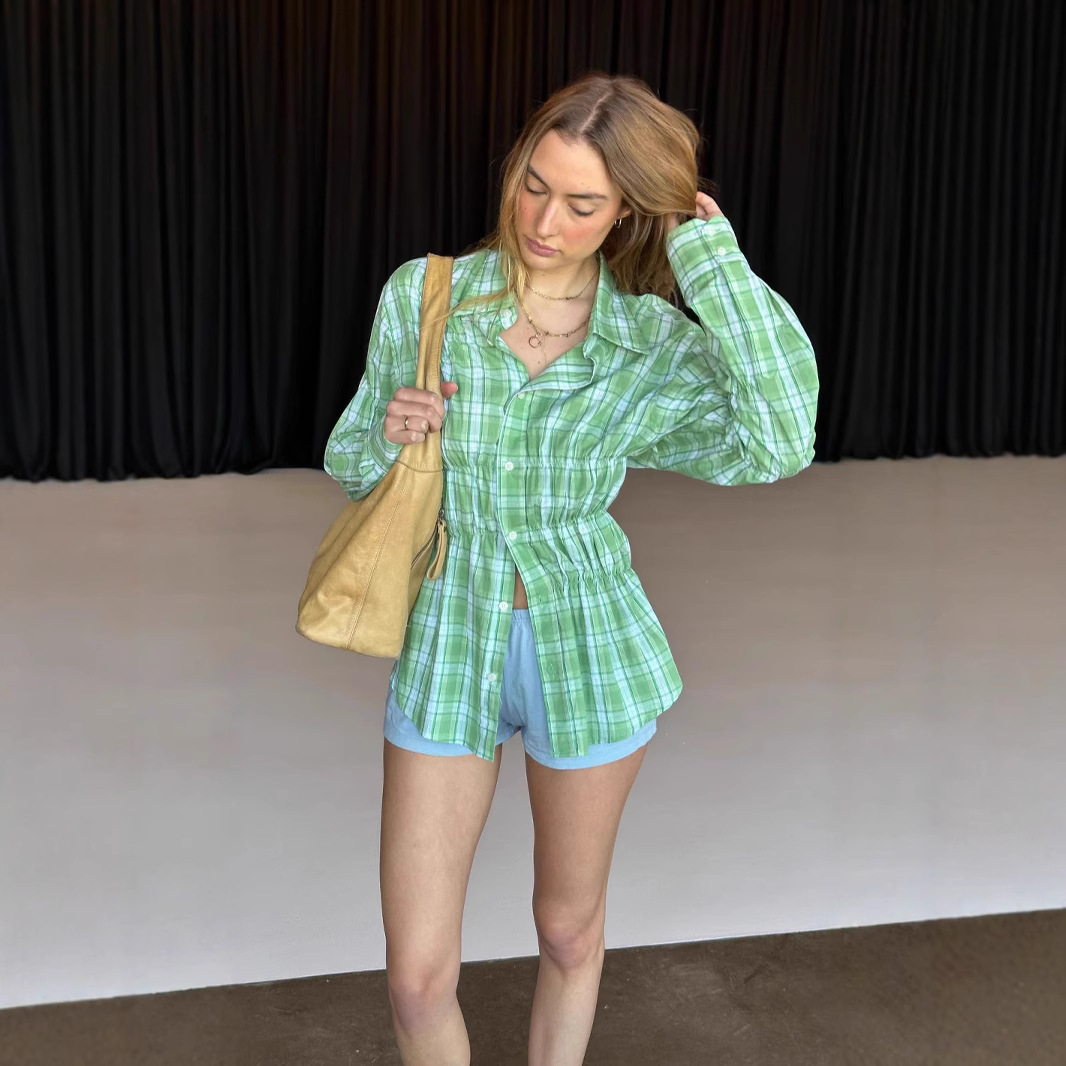 2025春の新型快適カジュアルシャツのプリントのしわの上着欧米の越境ファッションのデザイン感の上着