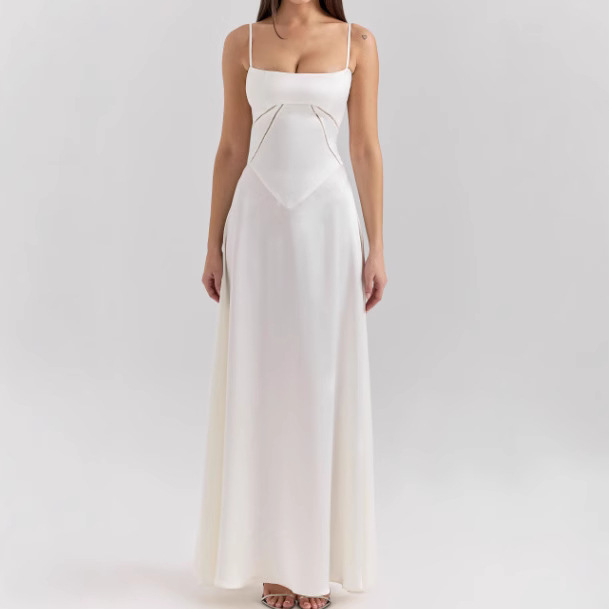 新商品発売休暇ストラップ袖なしウエスト大振り子ワンピース越境欧米風気質高級感ロングスカート