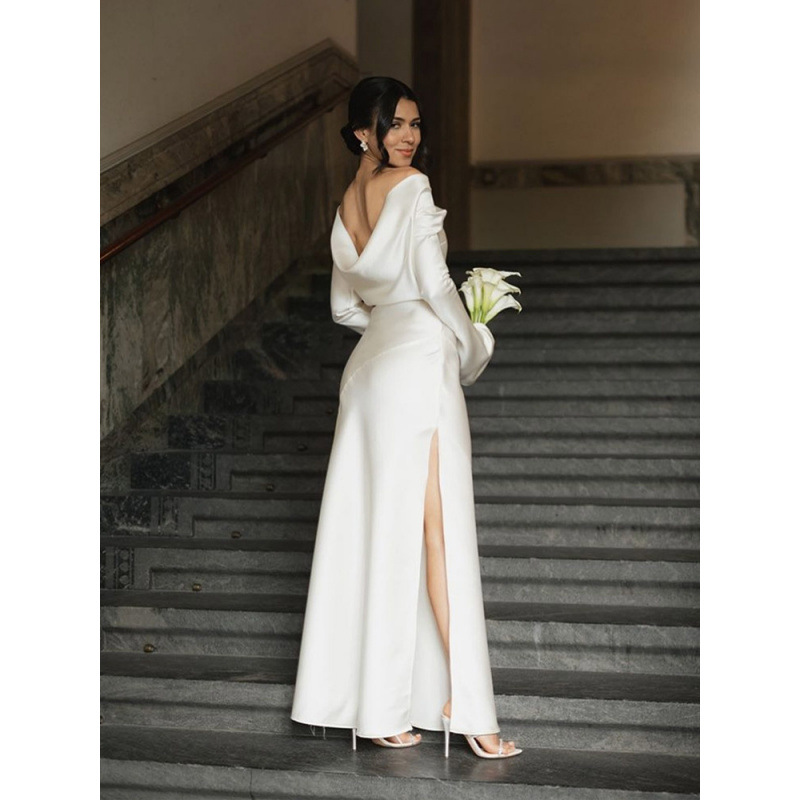 新商品の純色の長袖のオープンワンピースの外国貿易の越境する高級感のファッションの気質の優雅な露背のイブニング・ドレス