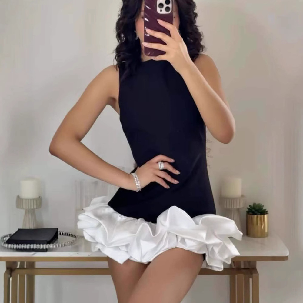 2024国境を越えた欧米アマゾンの新型白黒衝突色は袖のないスカートのファッション的なセクシーな修身女装をつなぎ合わせた