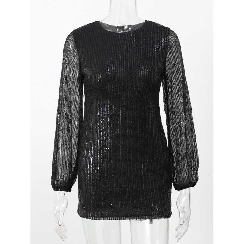 実拍新型ファッション丸首長袖気質優雅通勤ワンピース2024アマゾン速売