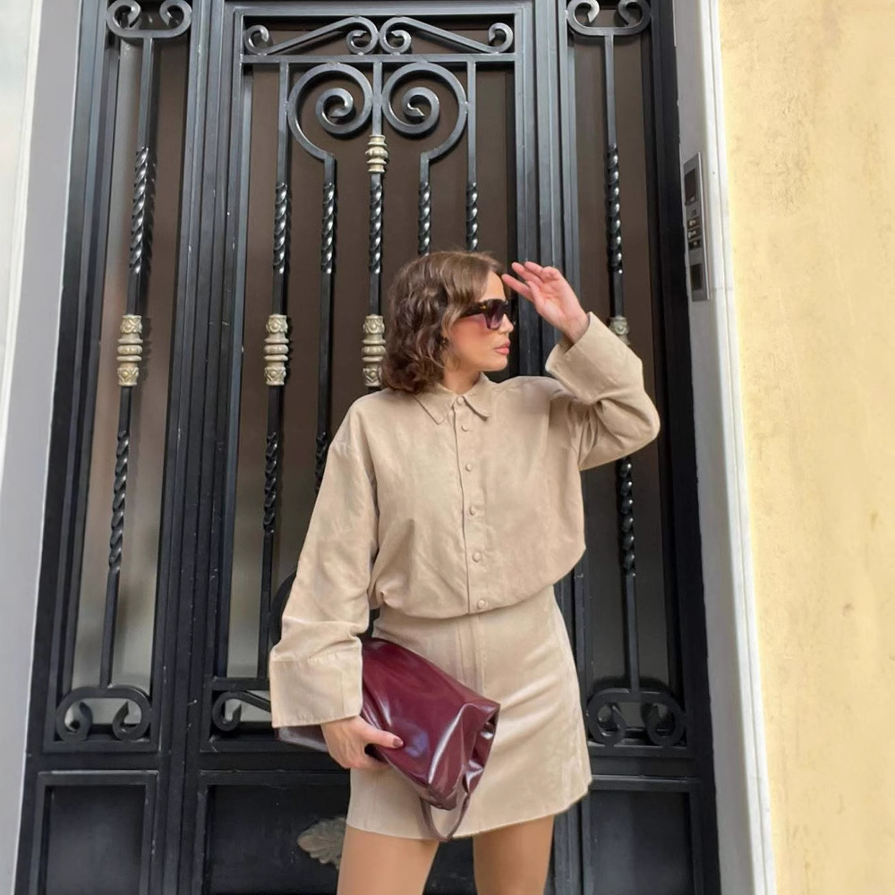 2024新型純色襟長袖ベルベットゆるいシャツ欧米国境を越えた優雅なレトロなファッション気質シャツ