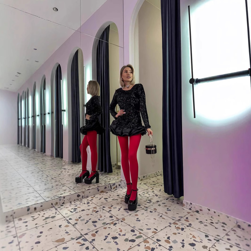 新商品のハイウエストのつなぎ合わせは色のスパンコールを打って長袖のワンピースのスカートを修理します。
