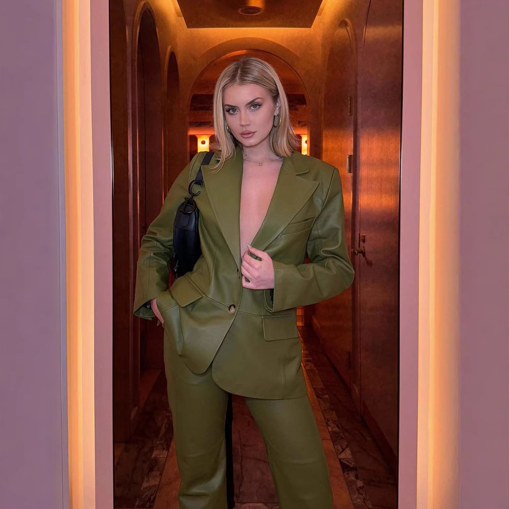 2024新型グリーン襟長袖皮質スーツズボンカジュアルスーツ対外貿易国境を越えたファッション気質女装