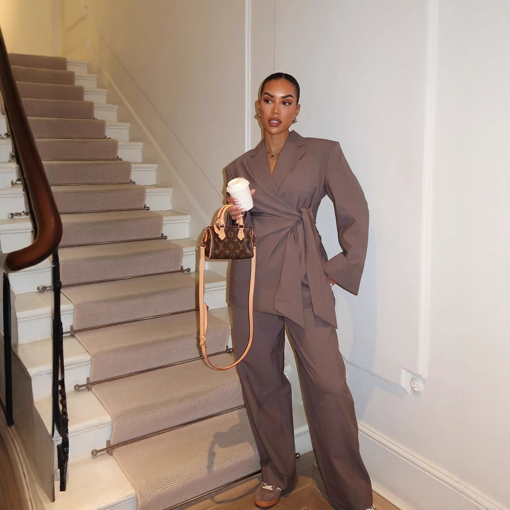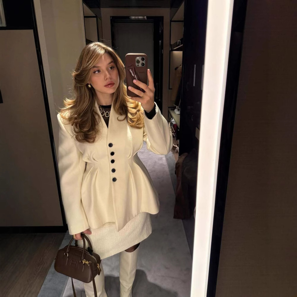 2024新型カレー色の襟付きウエストスリムコートズボンセットクロスボーダーファッション気質通勤スーツ