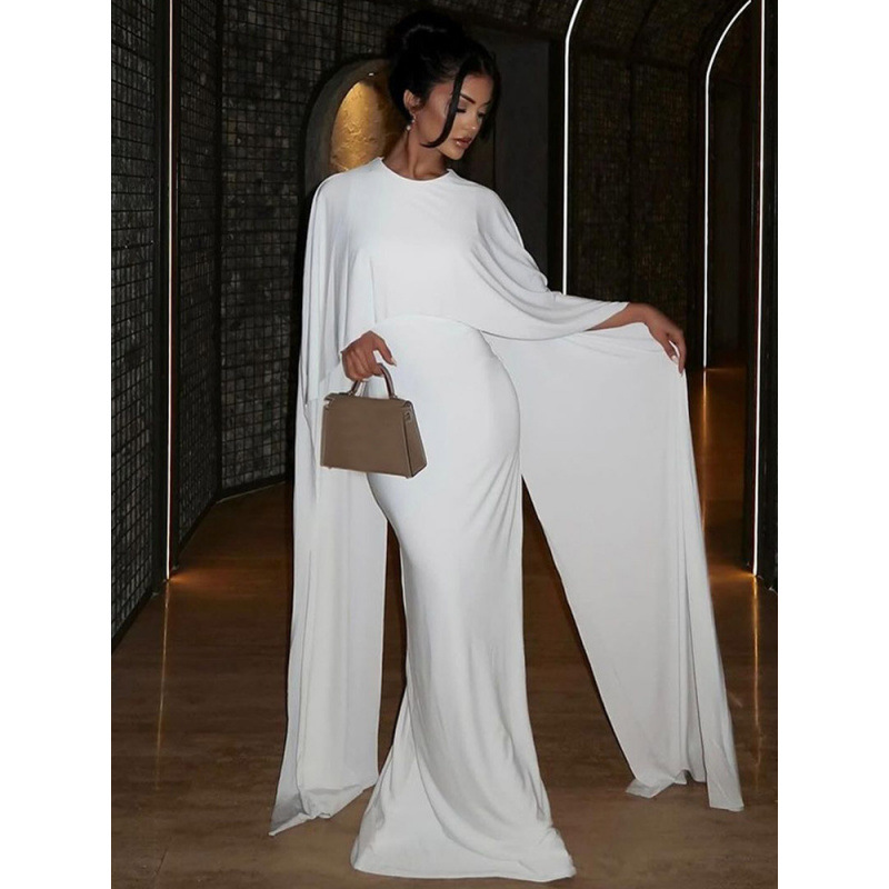 2024新型ファッション気質優雅な白いロングマントワンピースアマゾン速売通ホットドレス
