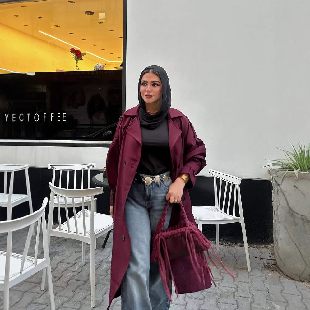 実際に新型のワインレッド秋冬の折り返しの長袖の中の長いタイプのカジュアルなファッションのゆったりしている風の服の欧米の越境の婦人服