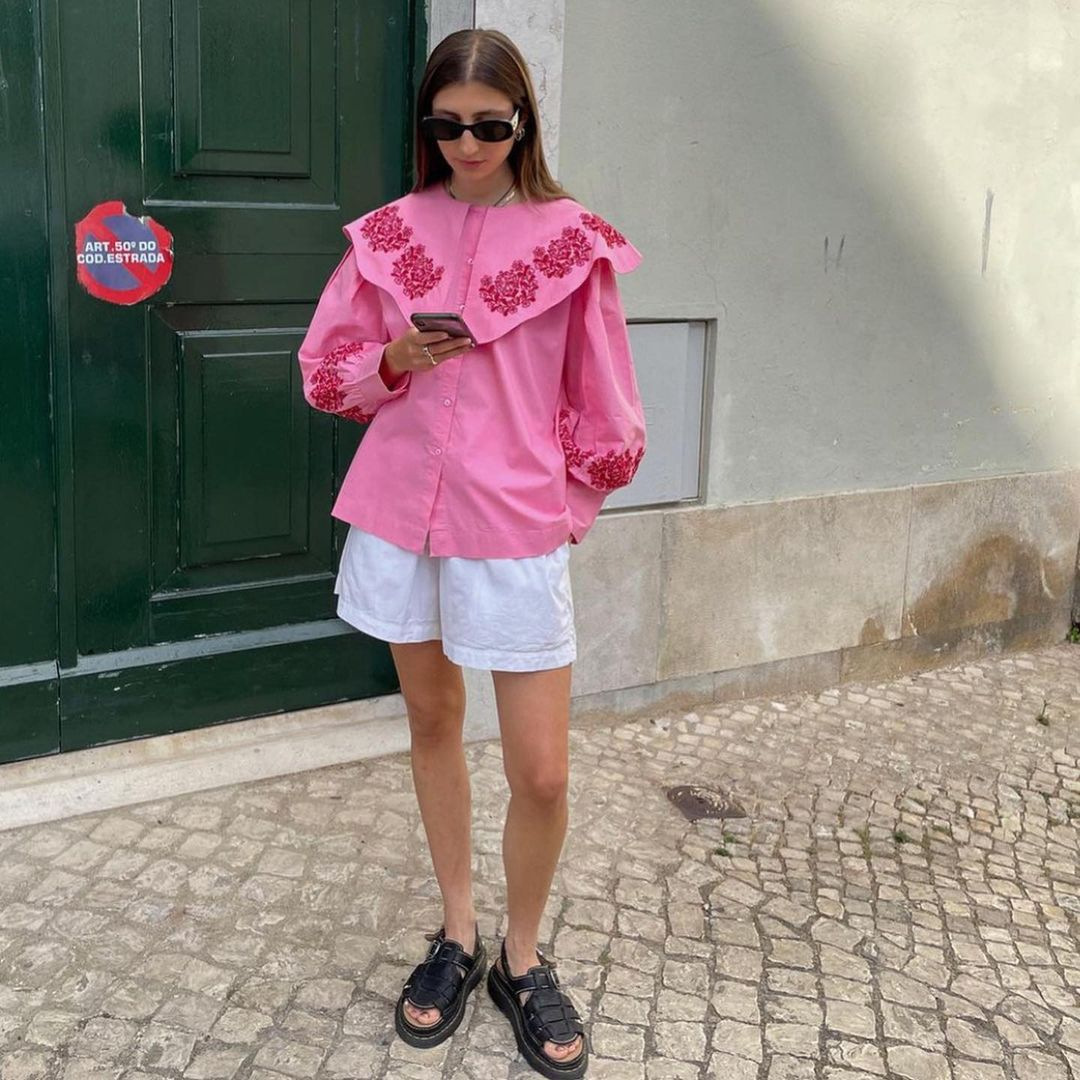欧米の国境を越えた婦人服2024年の春に起爆した甘い風のシャツの花の刺繍の花の縁の襟のゆったりした上着