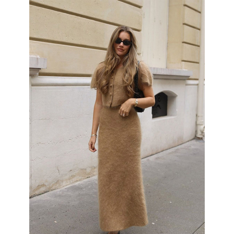 ファッション秋冬新作丸襟半袖上着ハーフスカートセット気質優雅街頭2024クロスボーダー欧米