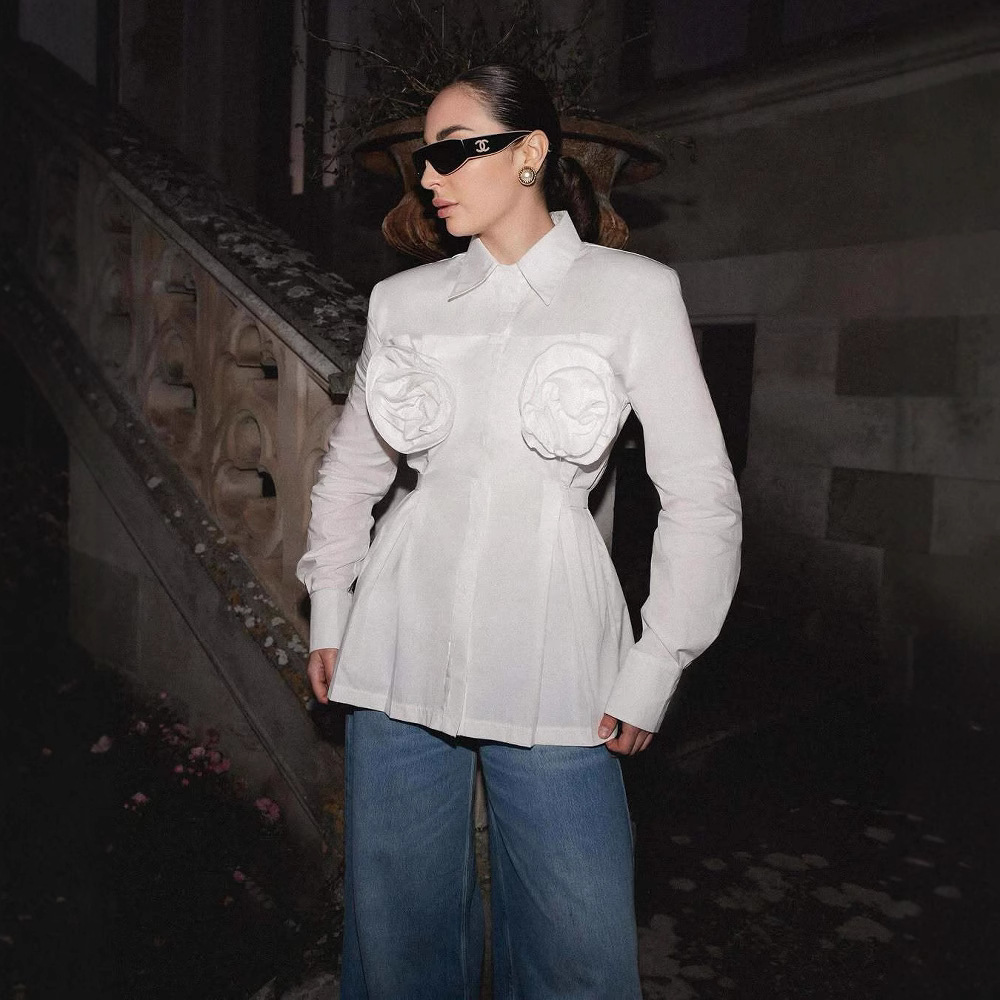 新しい襟をめくる長袖の立体花は腰のシャツを収めます。
