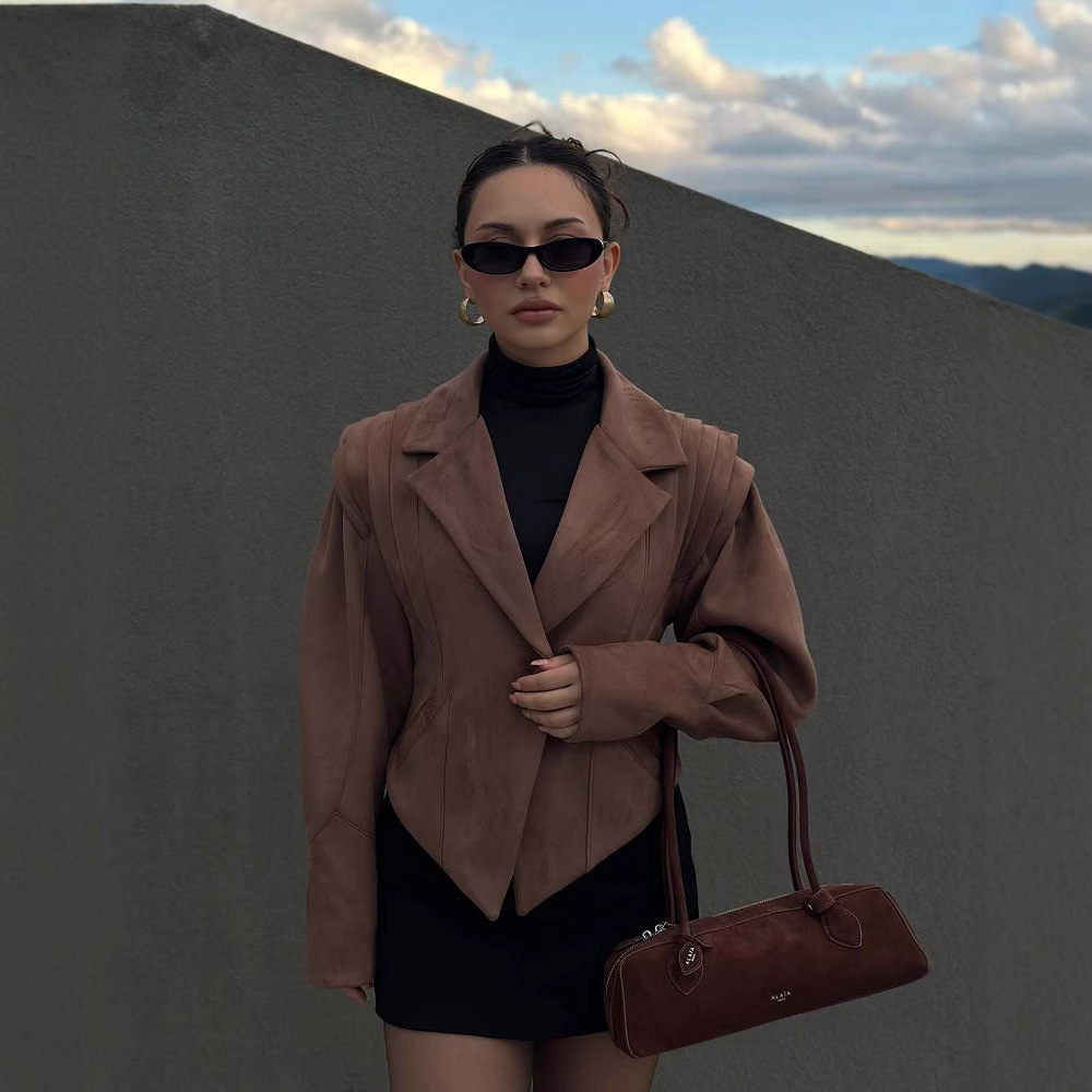 2024新型修身純色襟長袖コートファッション気質通勤コート欧米クロスボーダー熱売